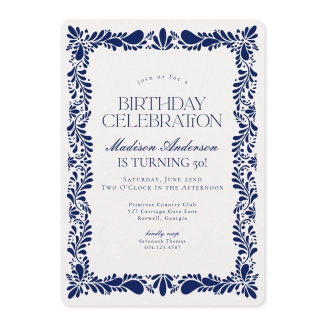 Blue Talavera Tile Spanish Fiesta Birthday Party Invitation